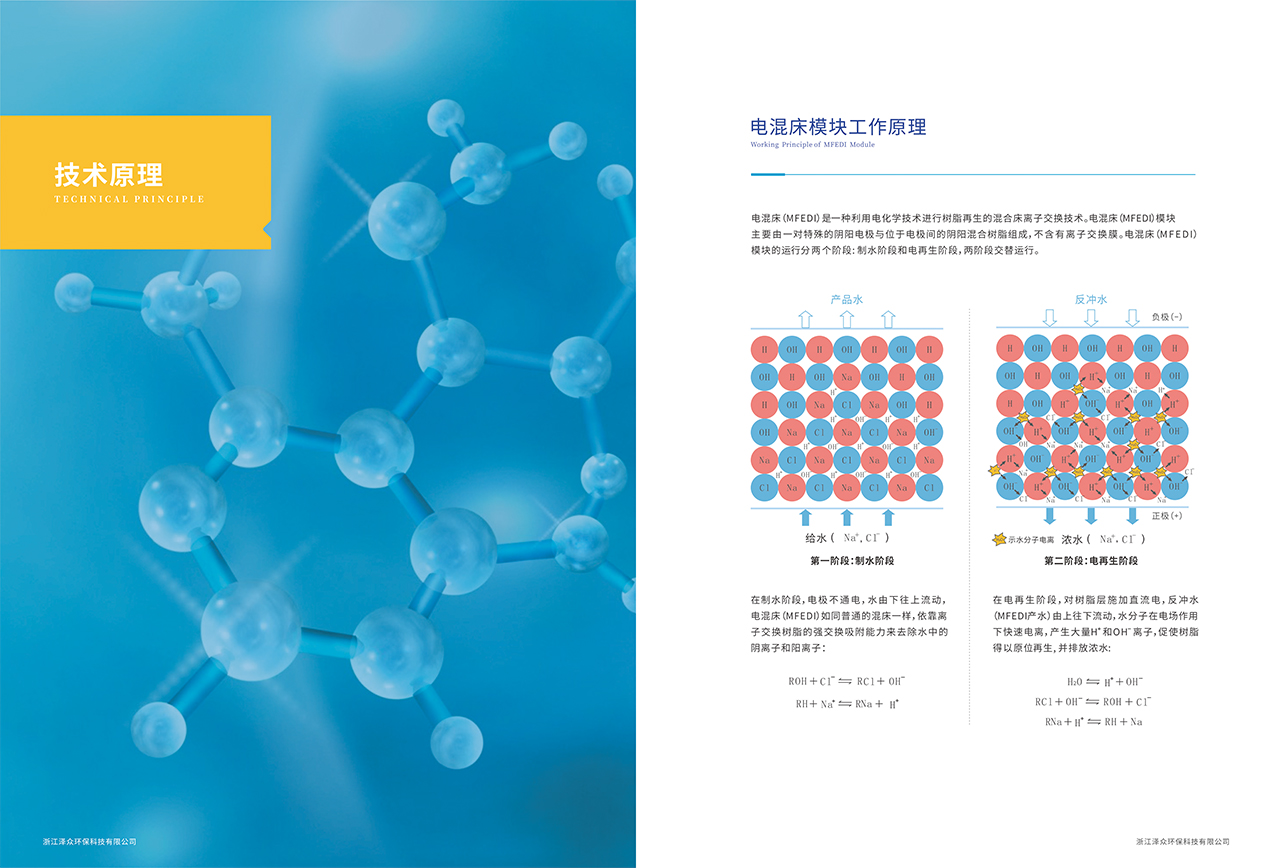 澤眾EDI又稱“電混床”,是一種利用電化學技術進行樹脂再生的混合床離子交換技術。模塊主要由一對特殊的陰陽電極與位于電極間的陰陽混合樹脂組成,不含離子交換膜。